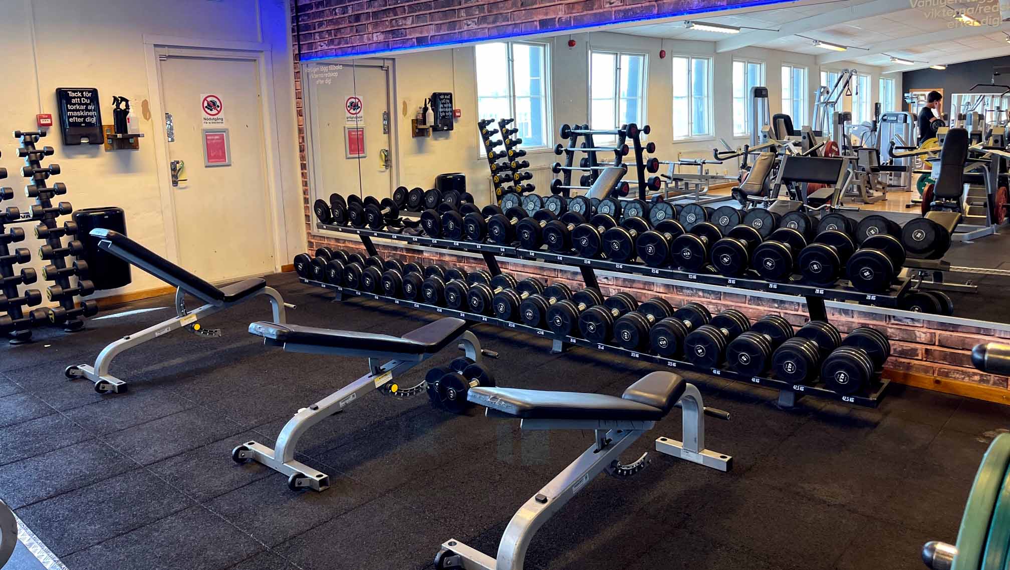 Ett välutrustad gym som rymmer maskiner från världsledande leverantörer samt två stycken gruppträningssalar med allt från BODYPUMP®, BODYATTACK®, CORE®, Crosscage, Cykel, Yoga och Seniorträning.